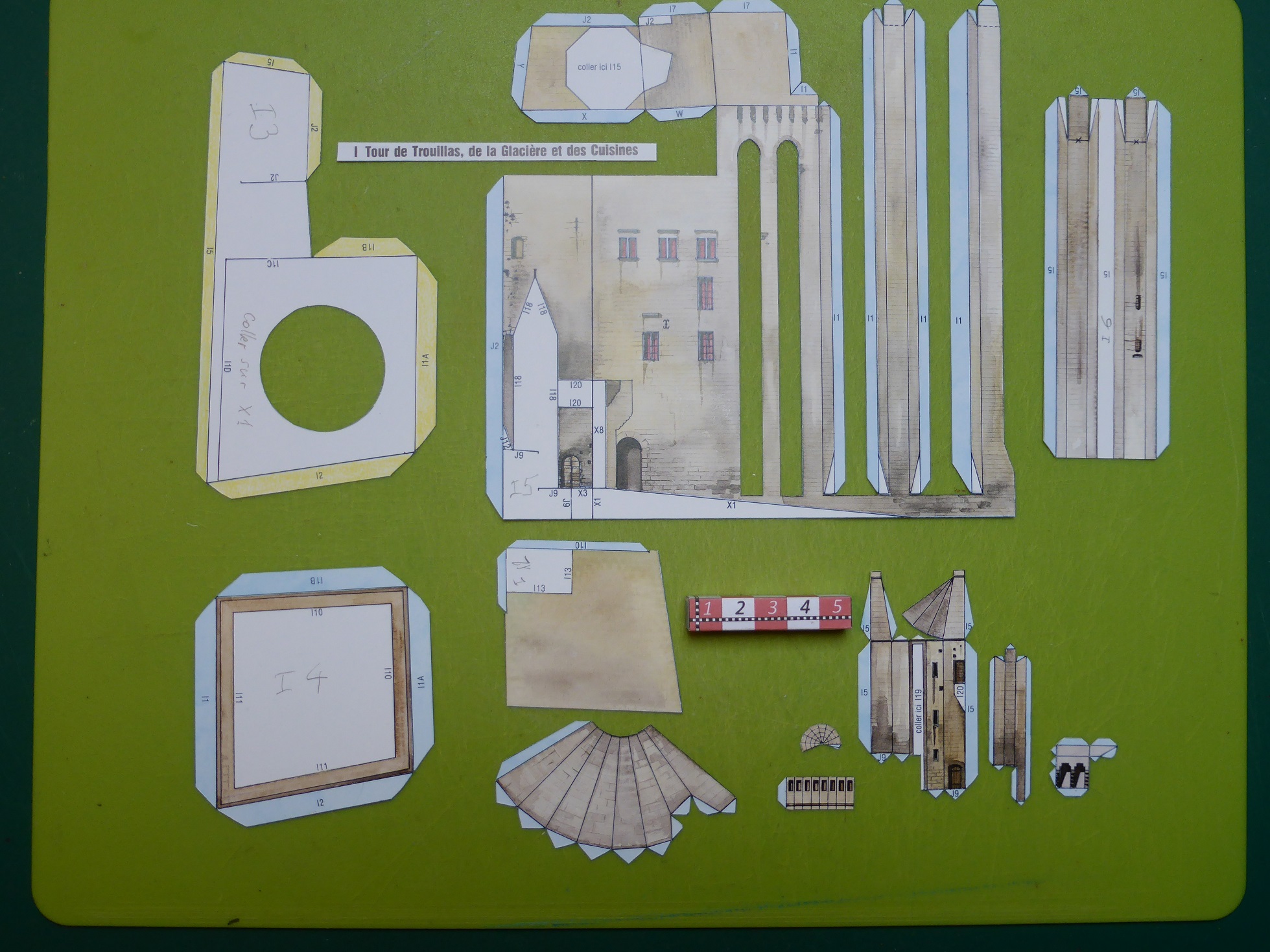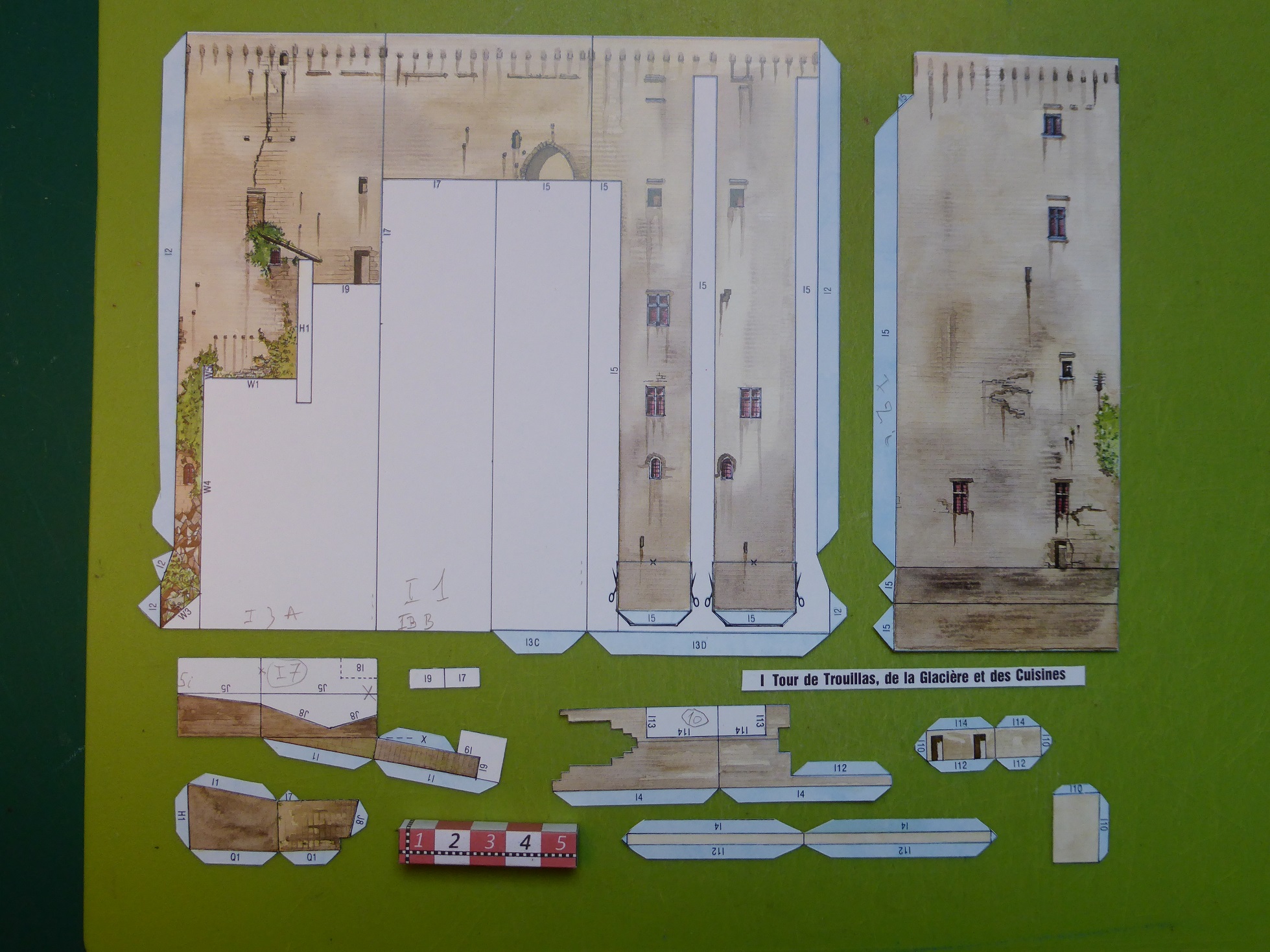 La tour de Trouillas, la Glacière et les cuisines, en deux planches découpées :