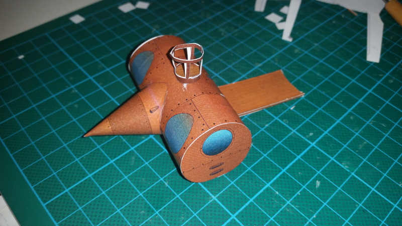 Découpe de la pièce principale et le renfort intérieur monté le "cockpit" collé: Ajout du nez: Avec la vigie et la passerelle: