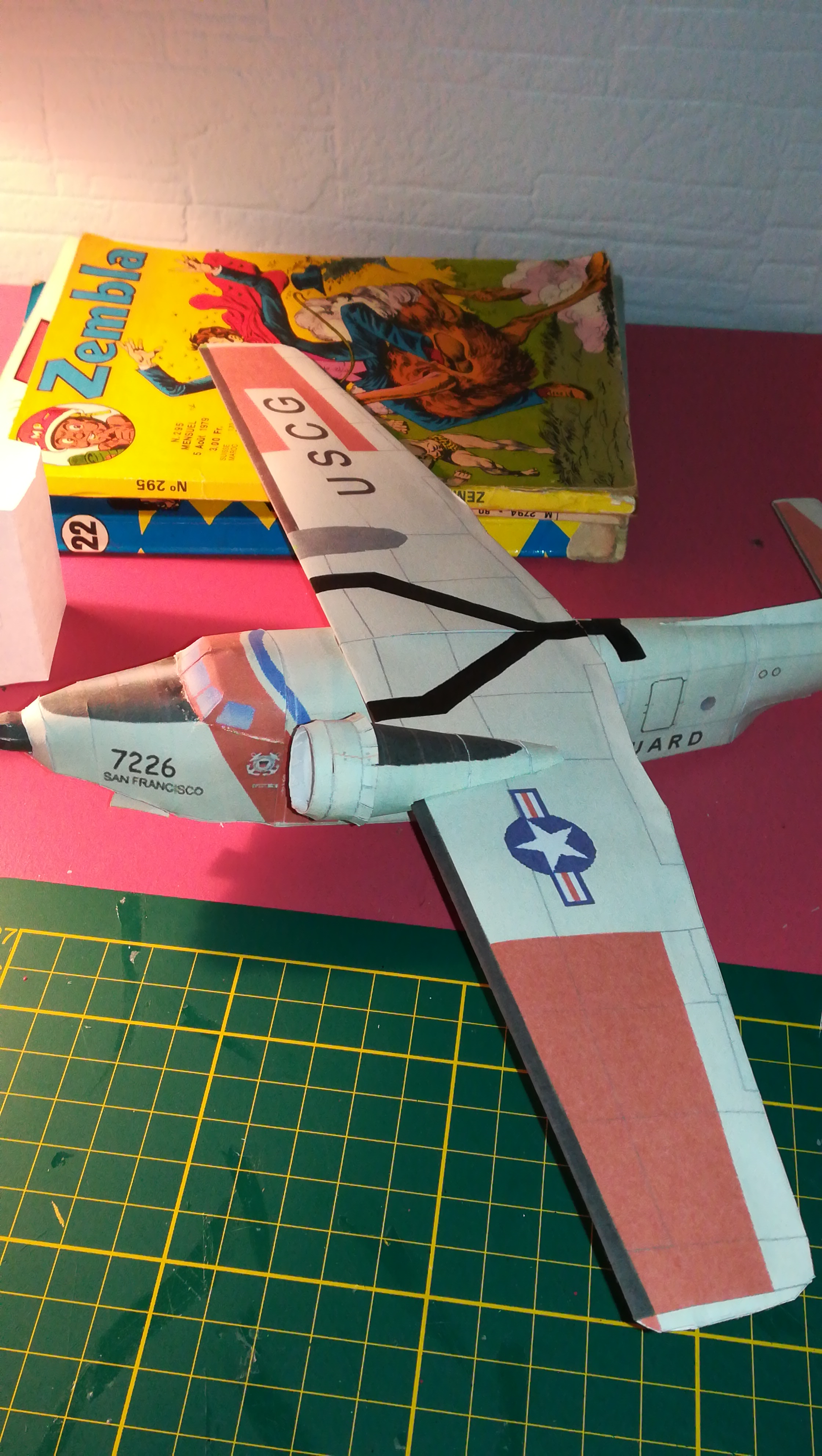 Ailes montées sur le renfort, collées assemblées et maintenant petite retouche de marqueur pour cacher le vilain defaut du papier trop court