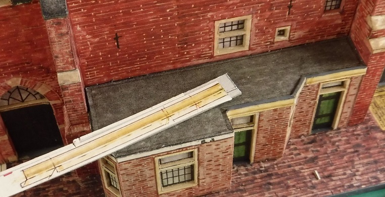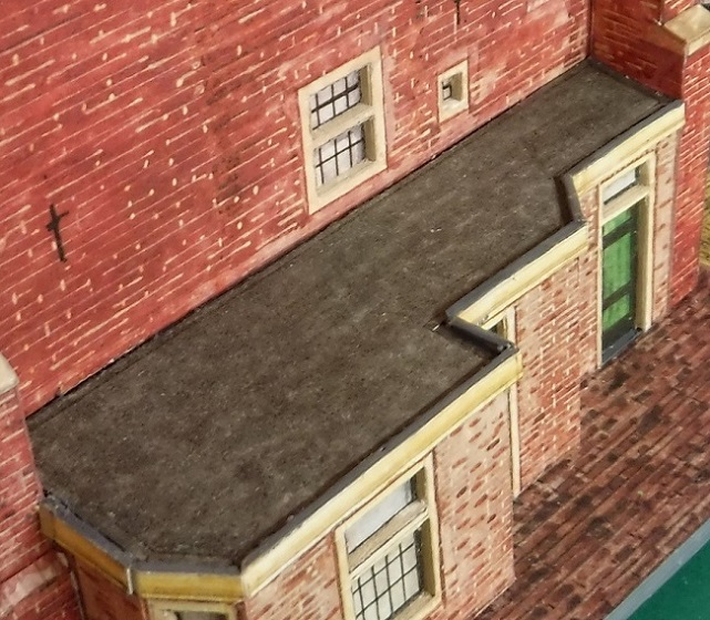 - ... donc je peux maintenant mettre le toit sans volets et la différence sur le mur est comblée.