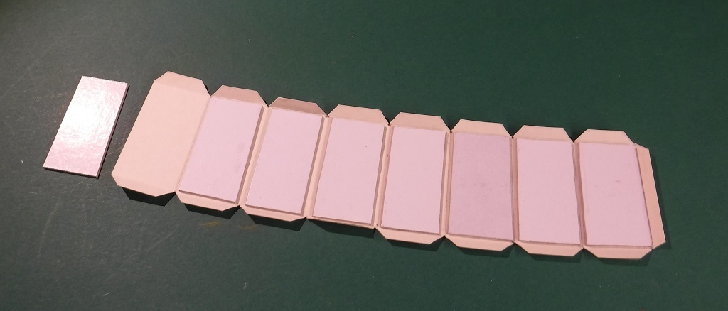 - ... découpez les garde-corps renforcés avec du carton Finn de 1,5 mm et divisez-les en segments ...