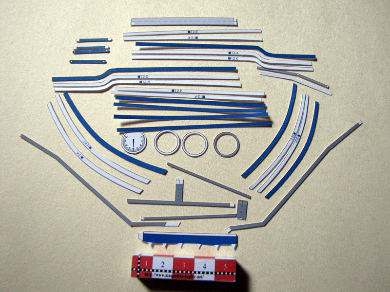 encore de toutes petites pièces : puis des plus grandes : et quelques sous ensembles construits prets à être fixés sur la loco: et de nouveau des pièces découpées: salutations et à suivre.