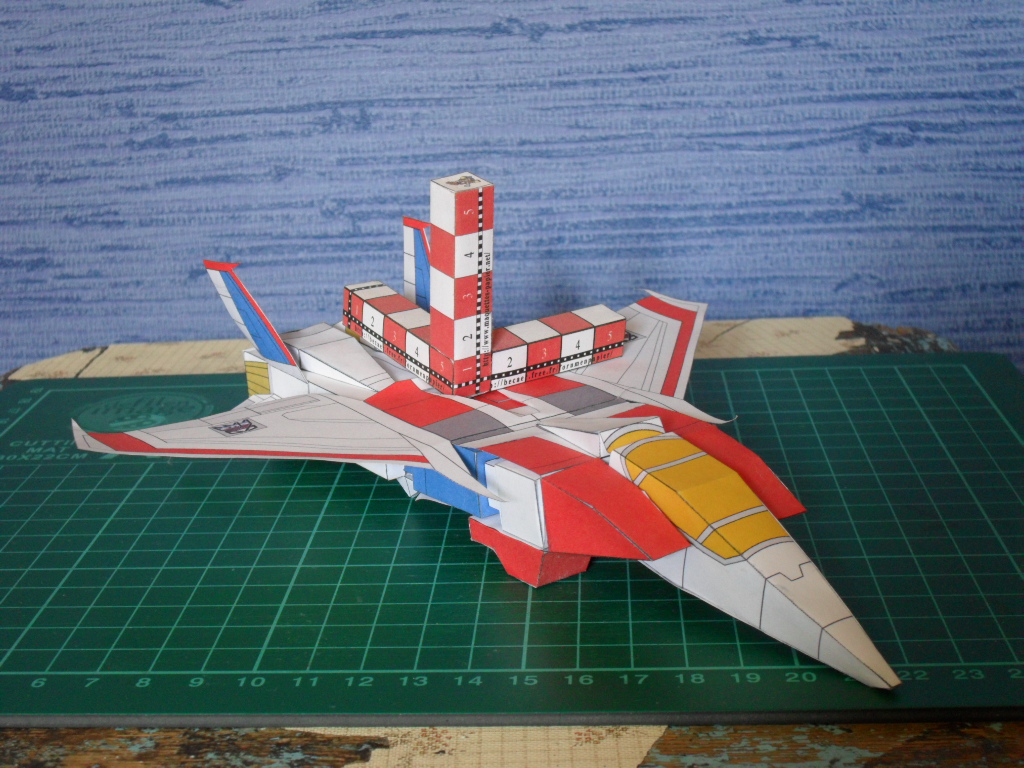 d'abord un perso d'animal crosing. et ensuite optimus prime transformable. à la base les articulation sont fais avec des bouton de pression et des cure dent, mais j'ai modifier le modèle pour remplacer les bouton pression(pas facile d'en trouver dans mon coin tandis que les cure dent on en trouve partout facilement) par des articulation en papier.