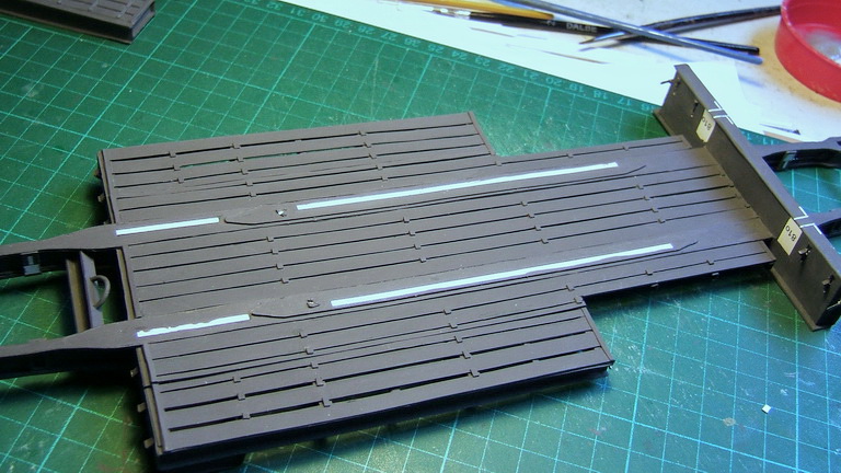 Suite avec la mise en place du platelage central. puis préparation des parties mobiles.