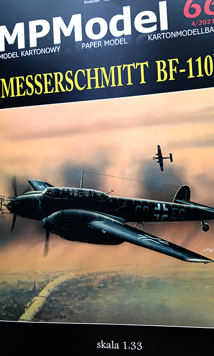 La découpe présentée n'est plus une nouveauté, mais l'édition 2021, qui est actuellement disponible à la vente dans le magasin en rayon (Dans mon cas, j'apprécie beaucoup cette forme d'achat, c'est probablement à mon âge). Messerschmitt Bf-110E à l'échelle 1:33 de la maison d'édition "ANSWER" de la série MPModel. Le modèle est bien imprimé dans une peinture de nuit intéressante. La seule chose qui m'inquiète est de savoir si je trouverai le temps d'assembler cette structure intéressante et dans cette version avec le radar.