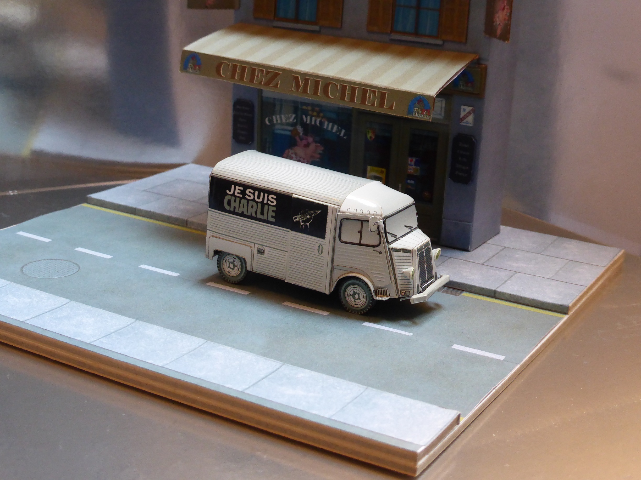Comme je continue mes investigations et l'inventaire de tous les modèles que nous avons assemblès (Souvenez-vous : 1000 et 1 H pour l'anniversaire de 2017), je viens de redécouvrir la magnifique réalisation de Michel cerfvoliste : le Citroen HY 1962 “Manfriet” téléchargé sur le site "http://www.paperdiorama.com" et réduit à une échelle proche du 1/52e