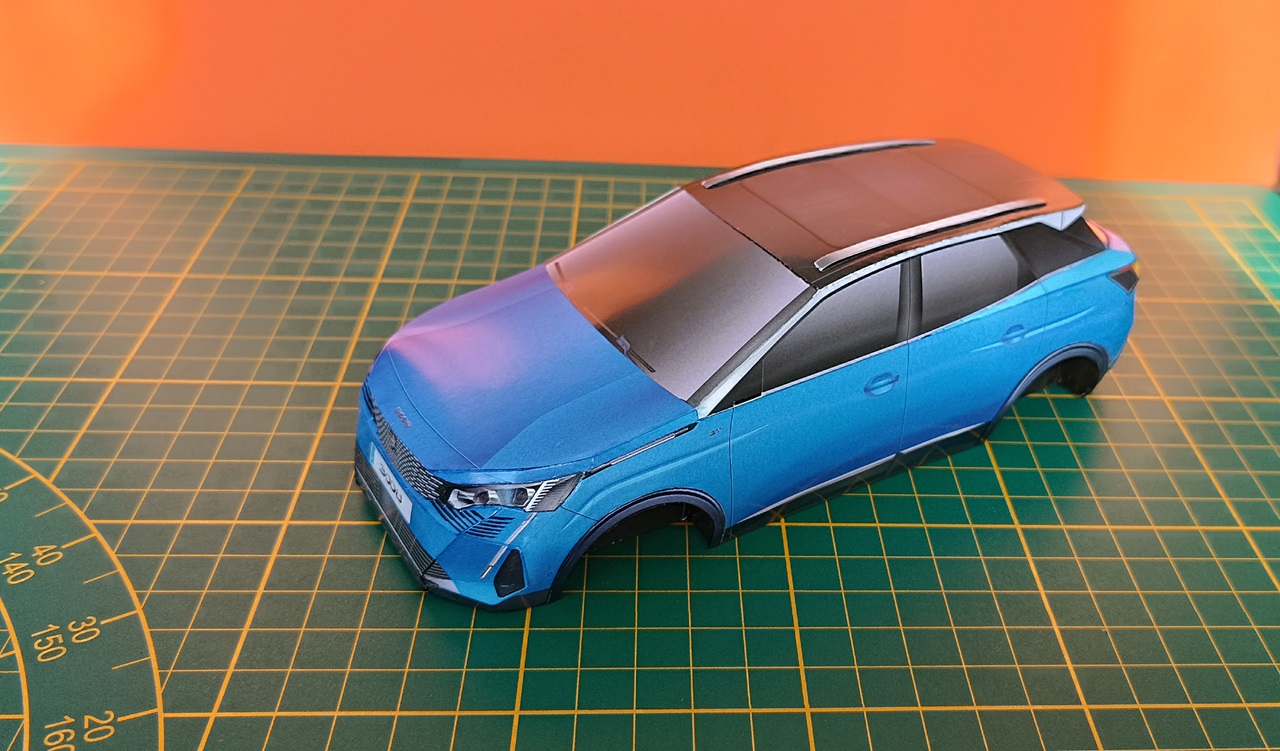 J'ai reçu un ensemble complet de balayages 3008 en couleur. J'ai aimé la couleur choisie par l'auteur. Une instruction de construction a également été ajoutée. Concise, mais les faits saillants sont visibles. J'ai imprimé deux ensembles. L'un avec l'intérieur, l'autre sans. J'ai d'abord décidé d'assembler sans intérieur. Et immédiatement trouvé deux erreurs. Une coupe incorrecte et aucune valve de collage.