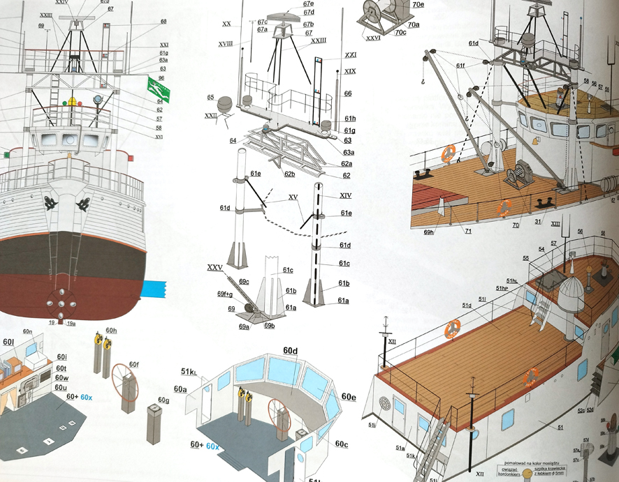 Pour ma part, j'aimerais commencer l'assemblage au plus vite, mais avec des projets déjà en cours et la construction prochaine du sous-marin « Surcouf », il faudra attendre. J'ajoute cependant quelques photos de cette maquette prises lors de l'exposition qui a eu lieu ce week-end à Oleśnica.