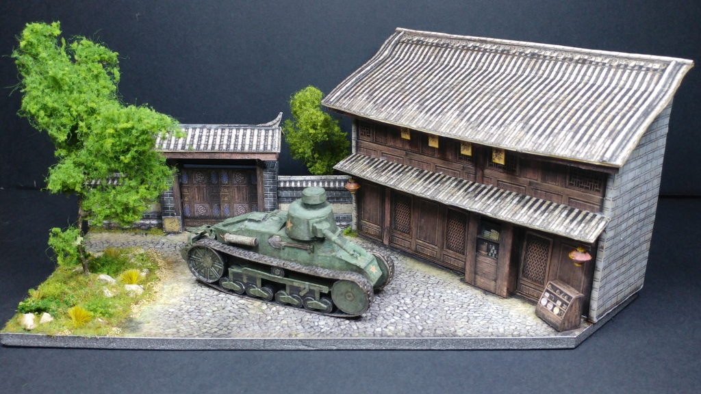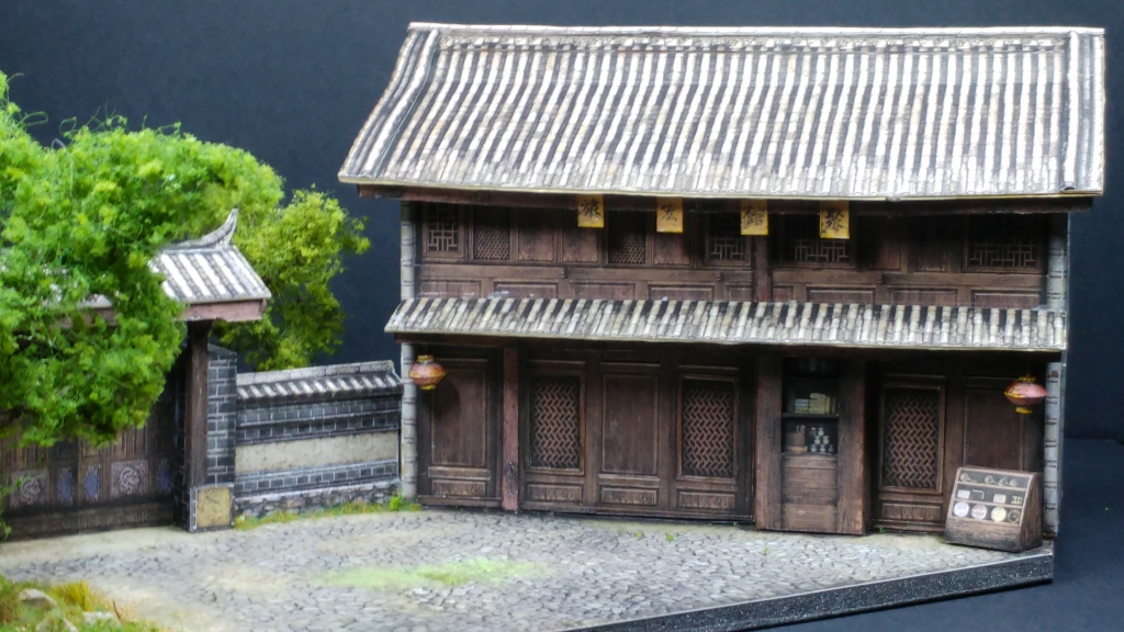 Et c'est justement aux couleurs de la Chine que cette maquette est proposée, agrémentée d'un sympathique petit diorama urbain Chinois.