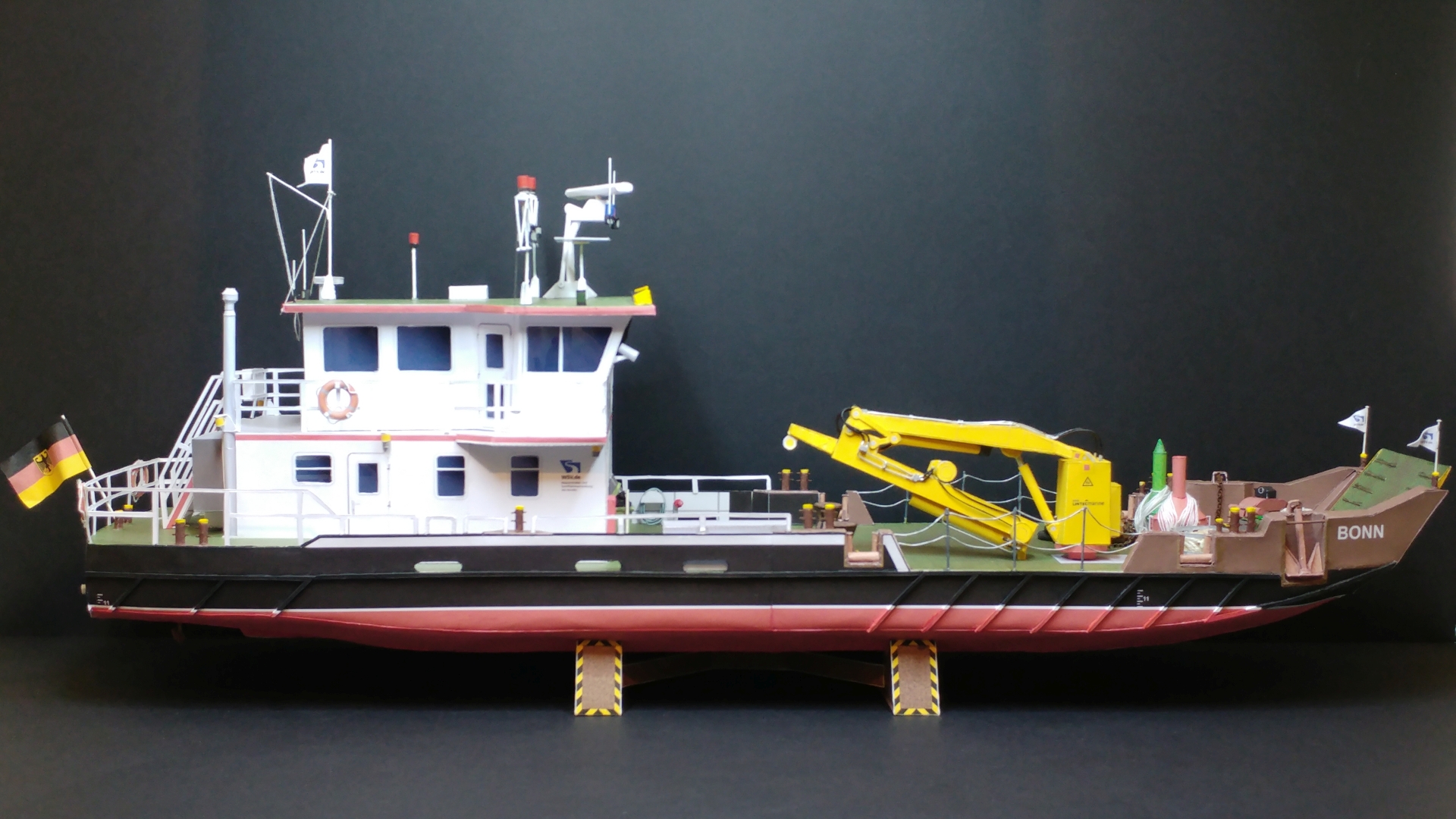 Pour l'essentiel : supprimer les fenêtre imprimées et les refaire dans du film transparent, parfaire la grue de levage, les bittes d''amarrage, agrémenter le pont de divers ustensiles, refaire les essuie-glaces qui ont disparu lors de la découpe des fenêtres, détailler au mieux les instruments et systèmes situés sur le toit, aménager une timonerie du fait de la transparence des fenêtres etc...