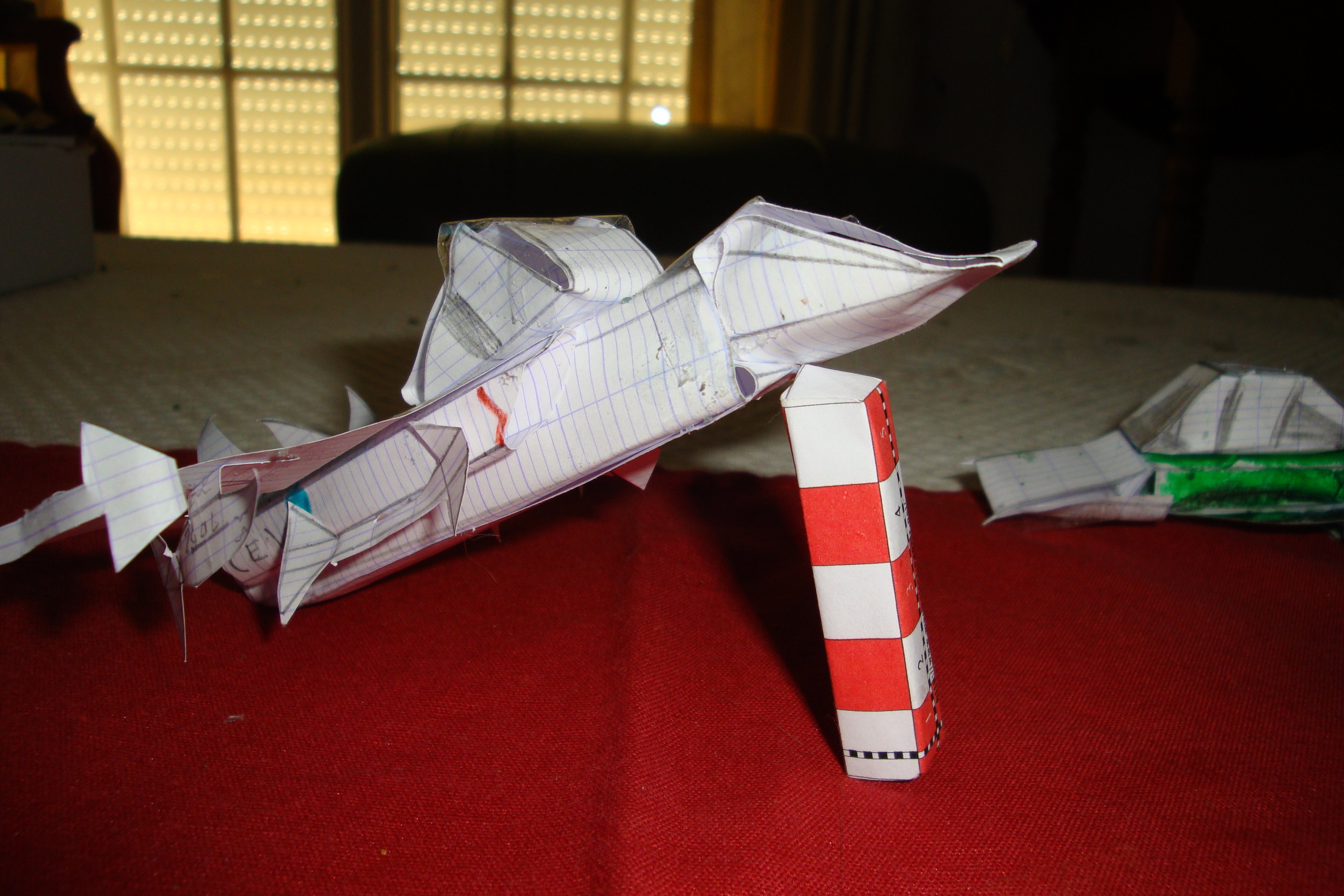 Pas mal pour une réalisation fait maison.Par contre sa n'est pas mal de faire des modèles fait par les autres ;D Essay d'aller dans certains topics ou ils expliquent comment faire des maquettes via pepakura ;D
