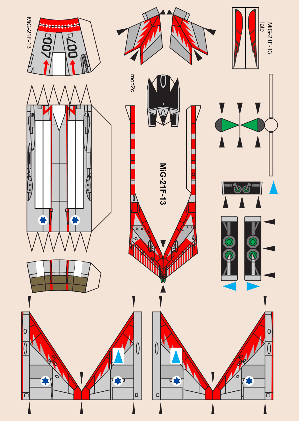 - le MiG-21F-13/Avia S-106 syrien camouflé a maintenant les bons marquages pour la période (noir/blanc/rouge + étoiles vertes et non noir/blanc/vert + étoiles rouges).