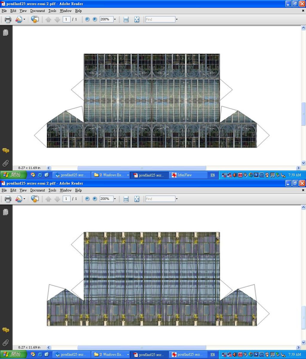 On va pas bien sur la photo mais sur le côté de la grande verrière y'a une serre exactement le modèle du chateau. Comme c'est à 10 mn en scooter du boulot, vais y faire un tour lundi midi pour prendre quelques clichés...