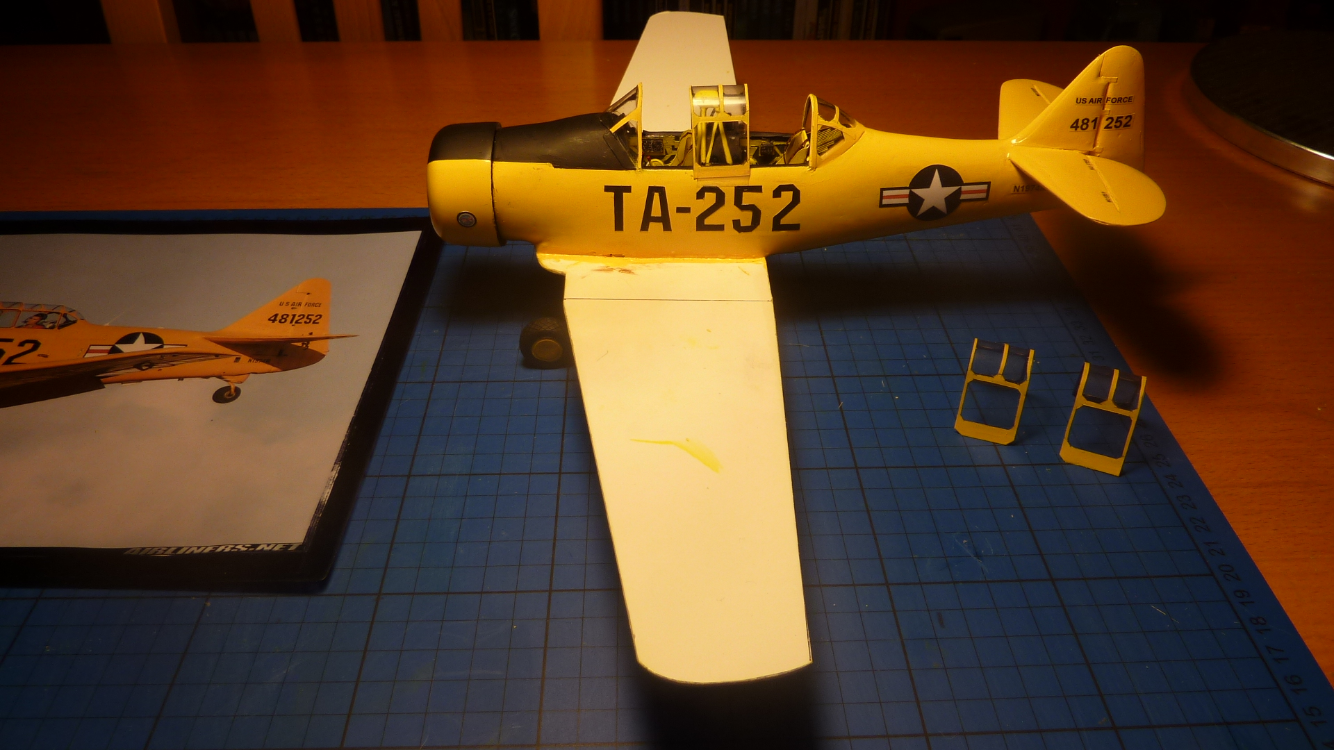 Sur le texan , je travaille actuellement sur la verrière et le poste de pilotage et me base principalement sur le kit ITALERI 1/48