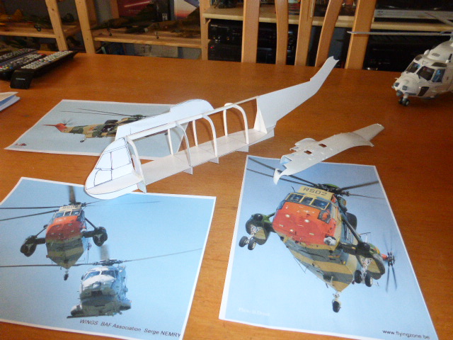 je vous présente le début du montage de l'hélico Sikorski Seaking ech 1/32 en bois et carton.