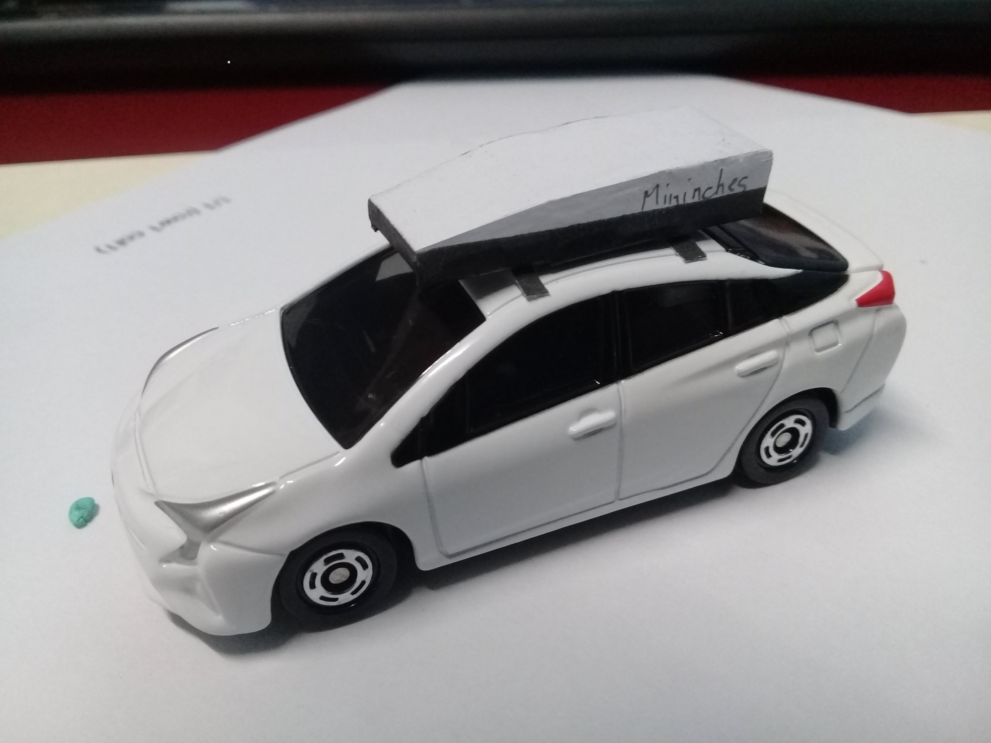 Taille d’un coffre de toit de 530 litres à l’échelle 1/60… 3.3 × 1.3 × 0.6 cm