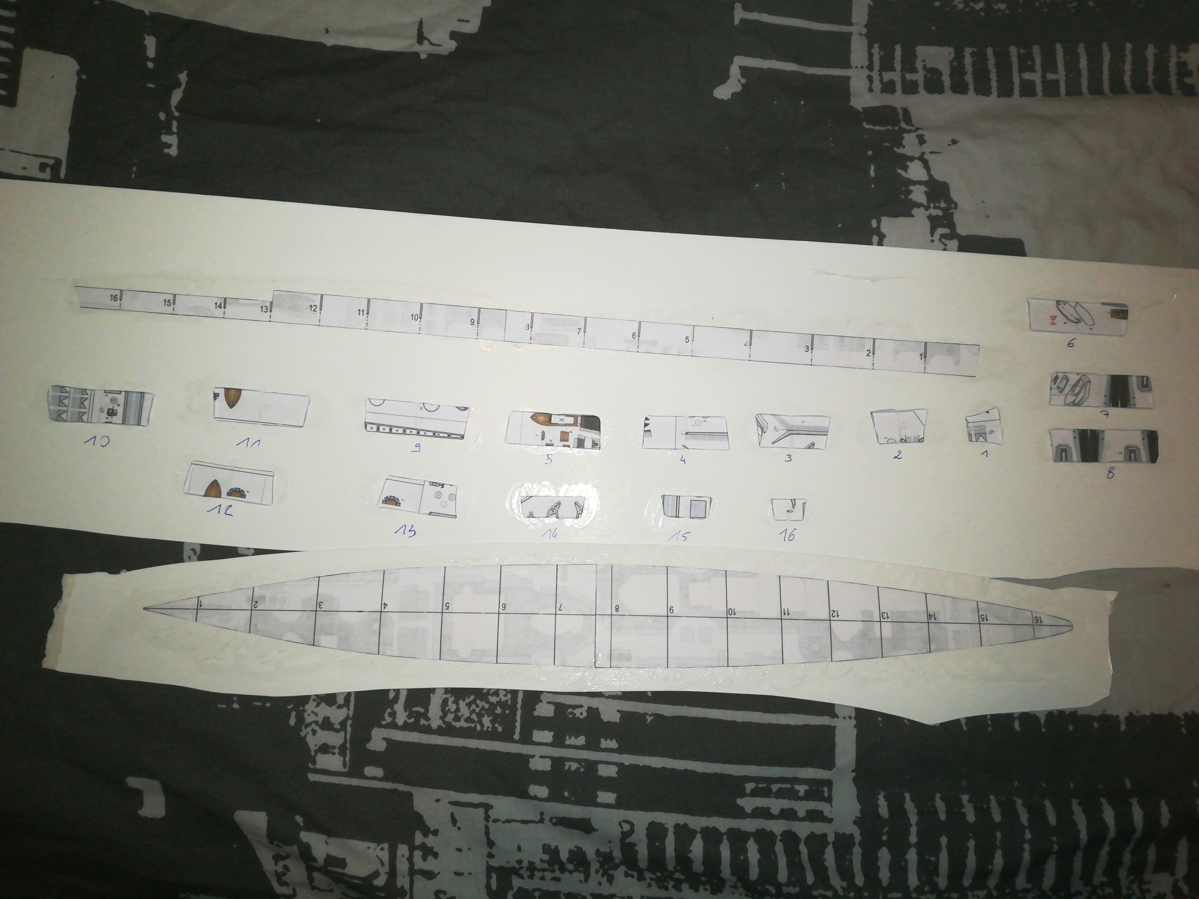 Je tiens à signaler que cette maquette est bourrée de gros défaut. Au niveau de la coque, l'armature est trop grande par rapport au contour qui ne prend pas la bonne forme. Au niveau des tourlelles, un décalages de 3mm vient rendre la tourelle instable et pas droite du tout. Au niveau de l'avion, une aile est plus grande que l'autre. Et le site où je l'ai pris est désormais inaccessible sur pc mais sur téléphone oui (sa rame bcp et indisponible les pdf). Cette maquette était un scharnhorst mais malheureusement elle est incomplète et manque cruellemznt de finition. (bcp de décalage au niveau de la coque et des tourelles). Mais pas de panique on abandonne l'idée de se bateau mais enx voilà un autre qui arrive et lui questquecest ? Les images arrives