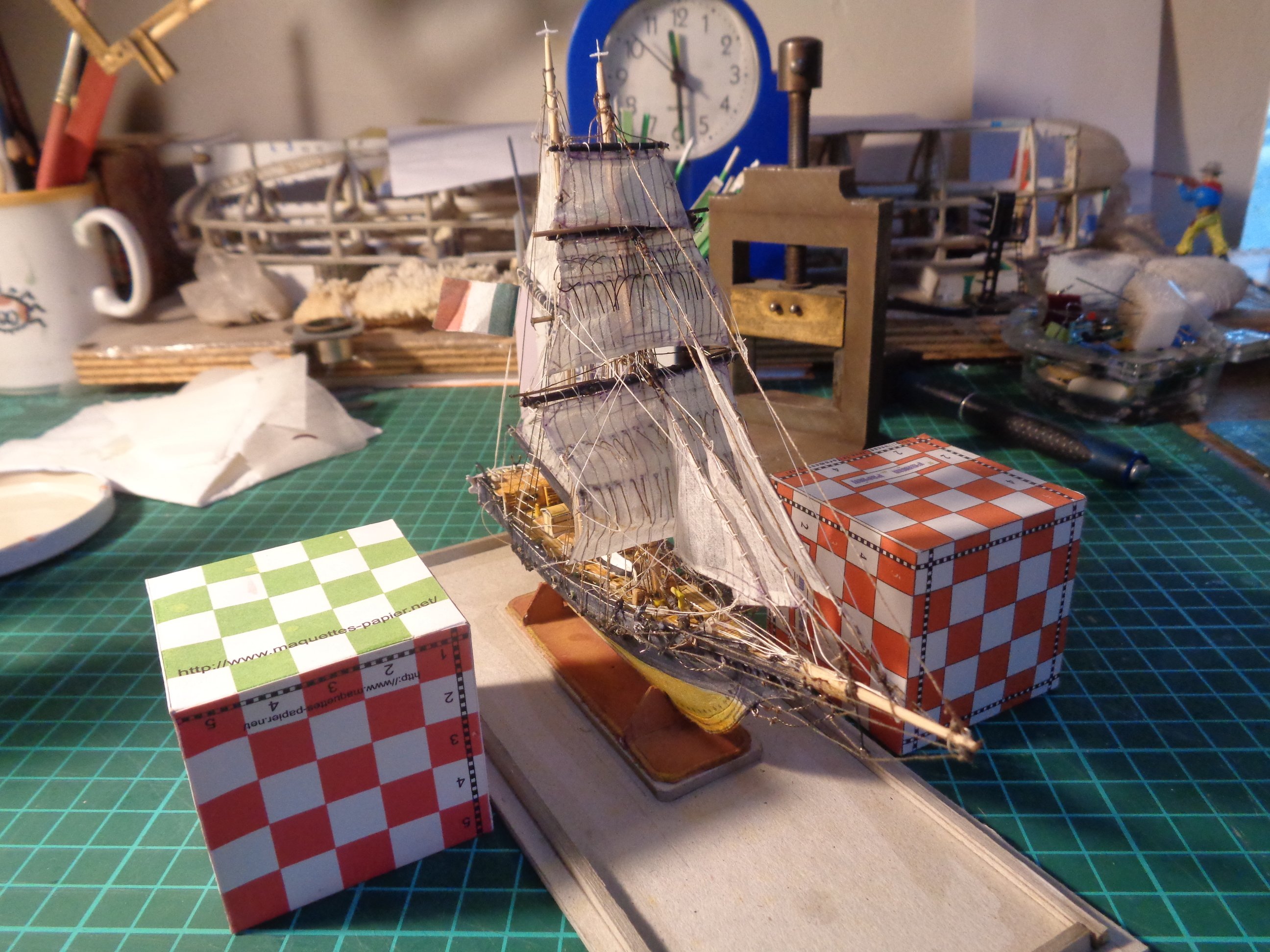 Ce sera tout pour ce soir, le montage commencera dans mon prochain message, peut être demain. Le navire est construit (voire les photos du message précédent), les explications iront donc jusqu'au bout.