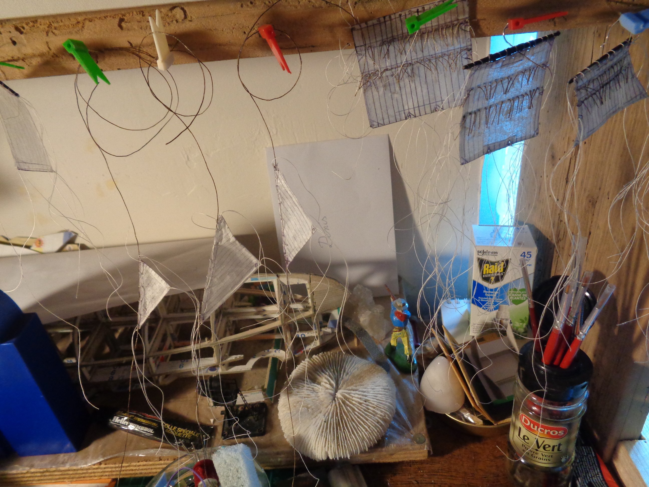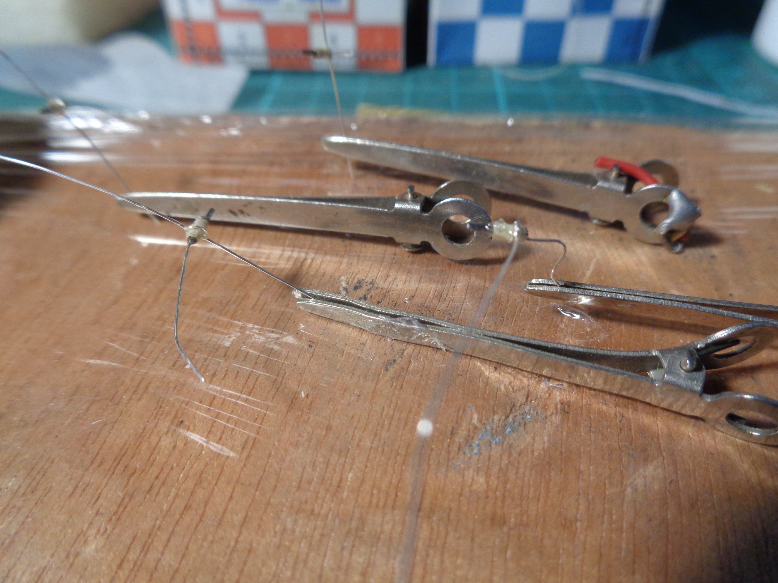- pinces diverses pour tenir les fils qui pendent de partout ou les laisser sécher (colle) en tension par leur simple poids