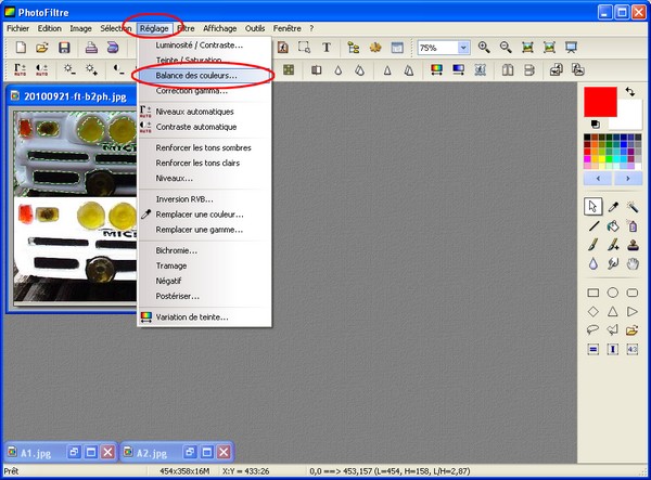 Tu selectionne Réglage et Balance des couleurs tu choisis ce qui te va le mieux.