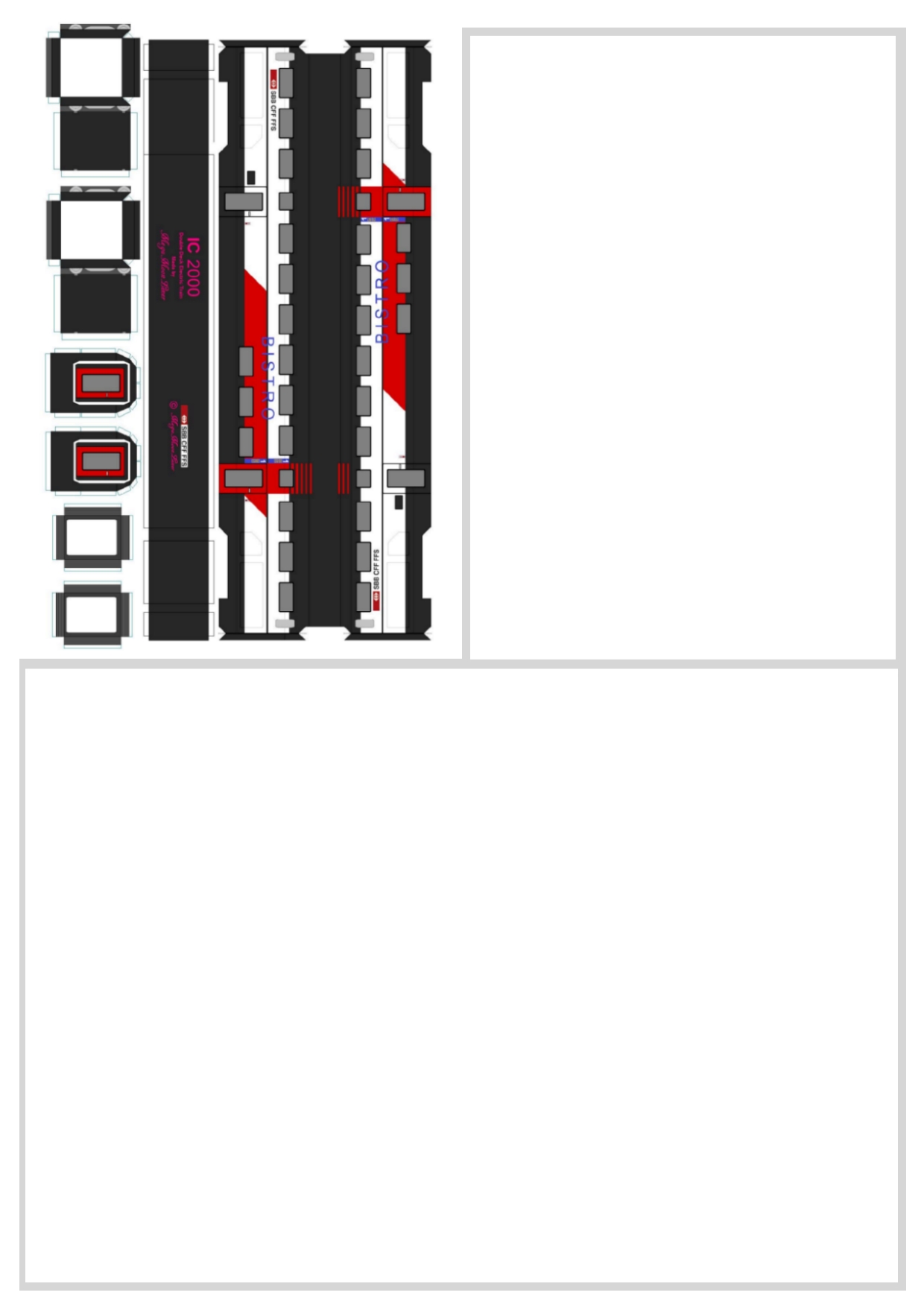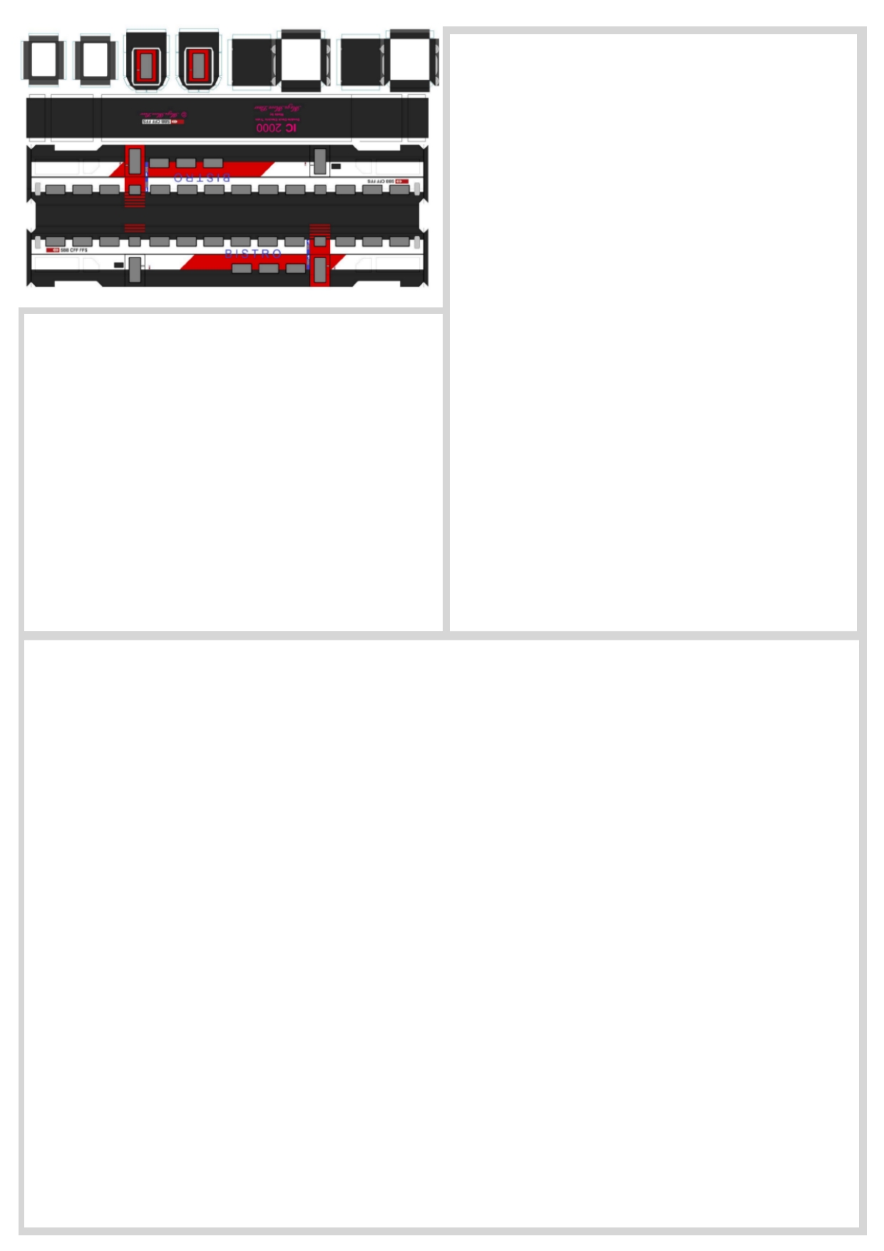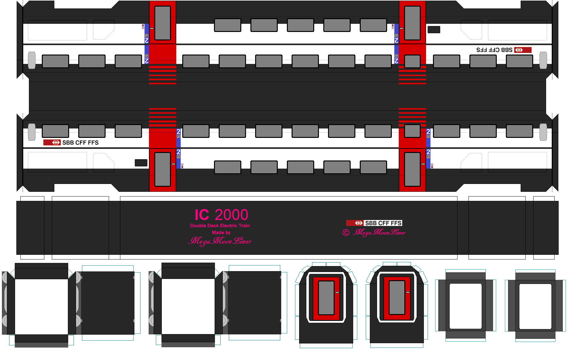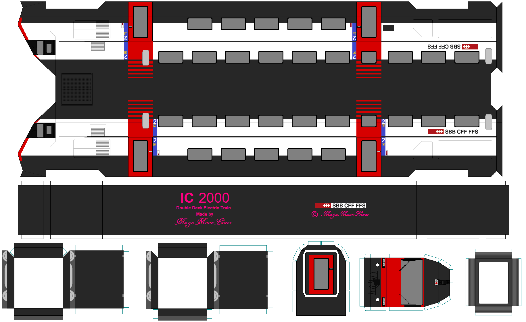 Je vais rédimensionner la Lok 2000, développée antérieurement, pour compléter la formation. Pour plus d'informations, visitez le site des CFF: http://sbb.ch/, et visitez bientôt ce lien Wikipedia, pour des infos précises: http://fr.wikipedia.org/wiki/IC_2000