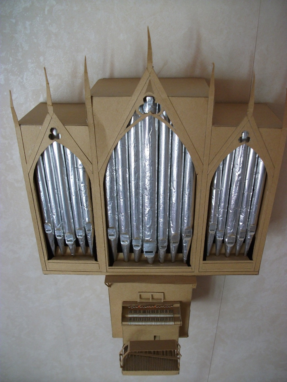 Il y a longtemps, j'avais bricolé la réduction d'un orgue à tuyaux. Je suis musicien organiste et passionné par les maquettes en papier depuis tout petit. Je viens de finir la cathédrale de Chartres (l'instant durable) et j'aimerais bien refaire un orgue. Mais quand on vieilli, on recherche un truc tout fait